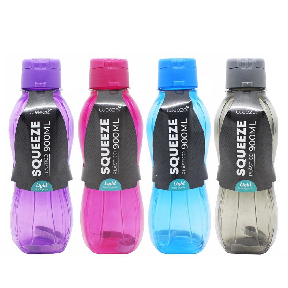 Squeeze Garrafa de agua quadrada com tampa rosca e ALÇA colors squeezze