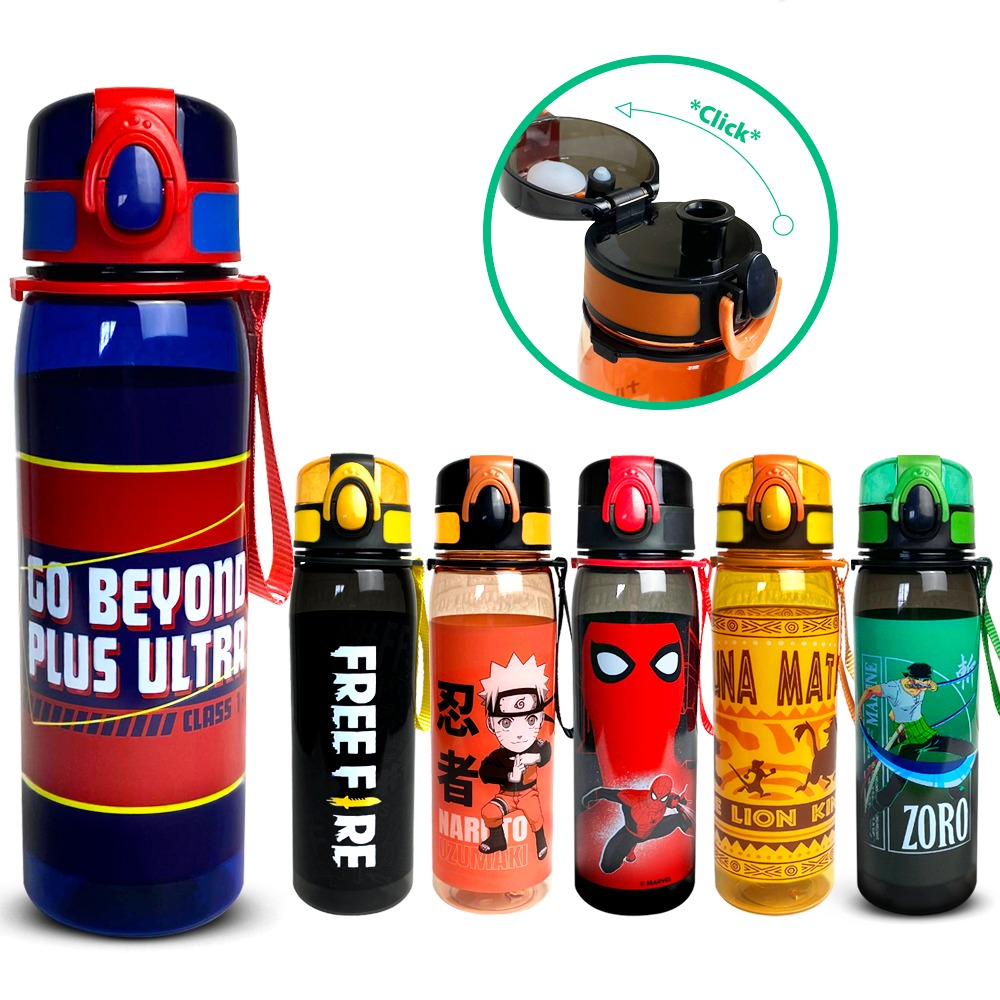 Garrafa Squeeze Clic Com Alça 500ml Gamer Série Desenho Spider Man/ Zoro/ Hakuna Matata/ My Hero Academia/ Free Fire/ Naruto Oficial