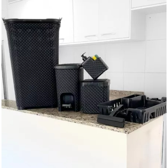 Jogo Rattan Cesto 50 litros + Lixeira 7L+Lixeira 5L+Escorredor Louça+Porta Detergente+Rodo Pia- TOY