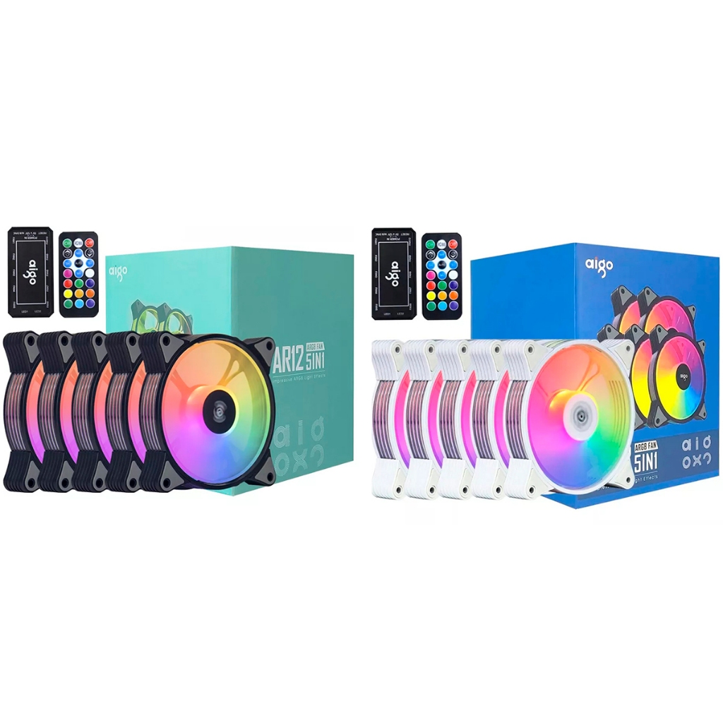 Fan Cooler Gamer Aigo Ar12 Rgb Conjunto Com 5 Fans 120mm Com Controladora