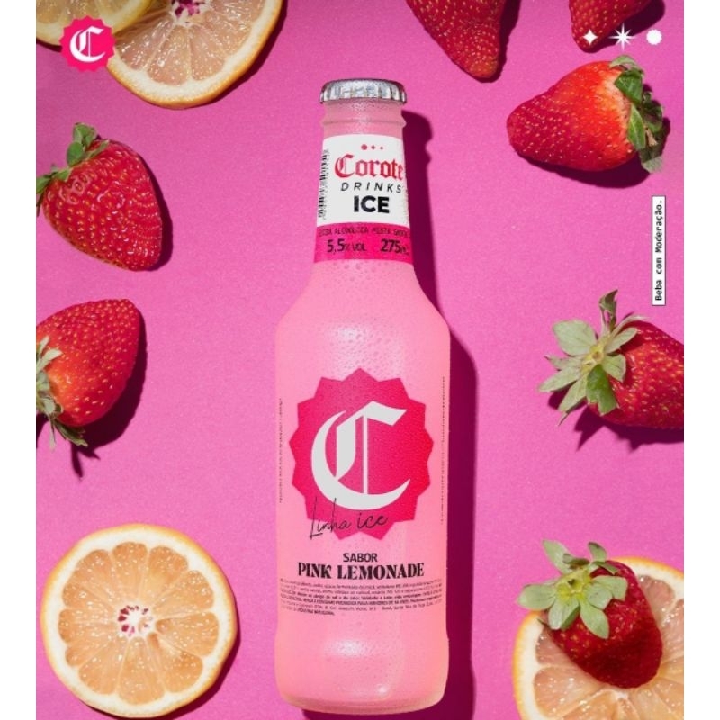 Corote Ice Pink Lemonade 275ml – Vodka Sabor Limão, Lima e Morango Gelada Pack C/6