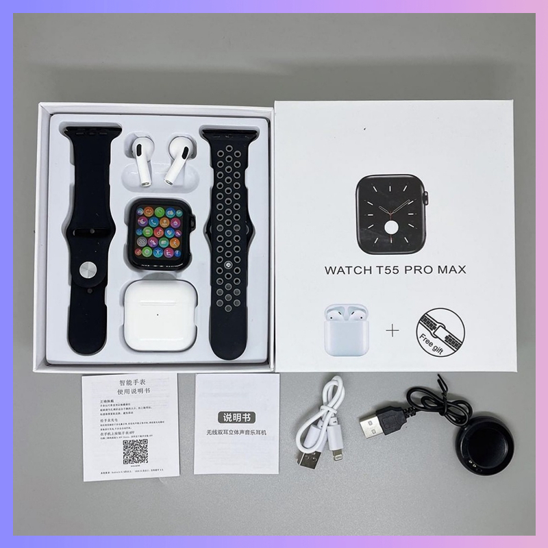 (Entrega rápida)2023 T55 PRO MAX Relógio Inteligente TWS Fone De Ouvido Dois Em Um 1,71 Polegadas SmartWatch PK W26