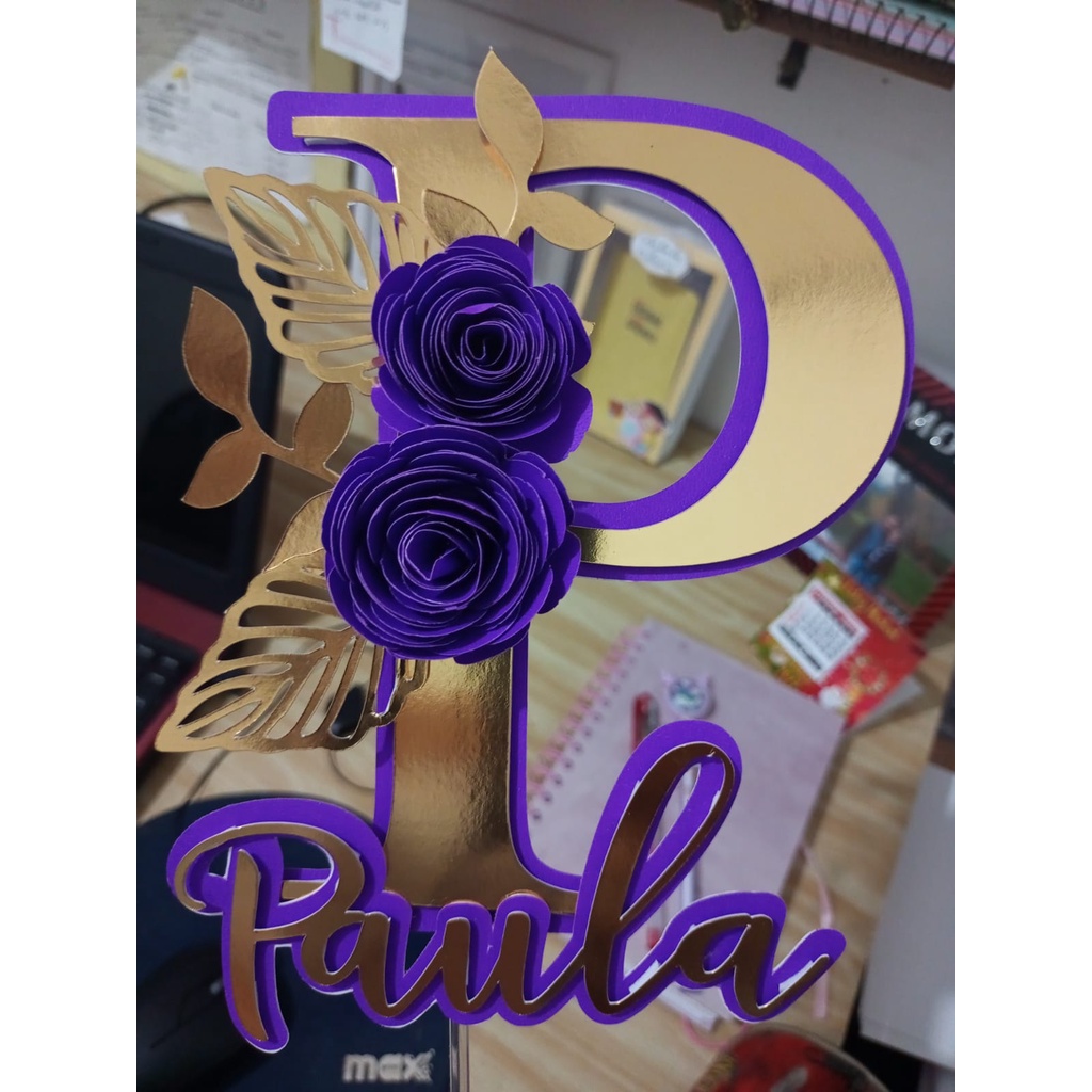 Topo de Bolo Letra Inicial - Personalizada.