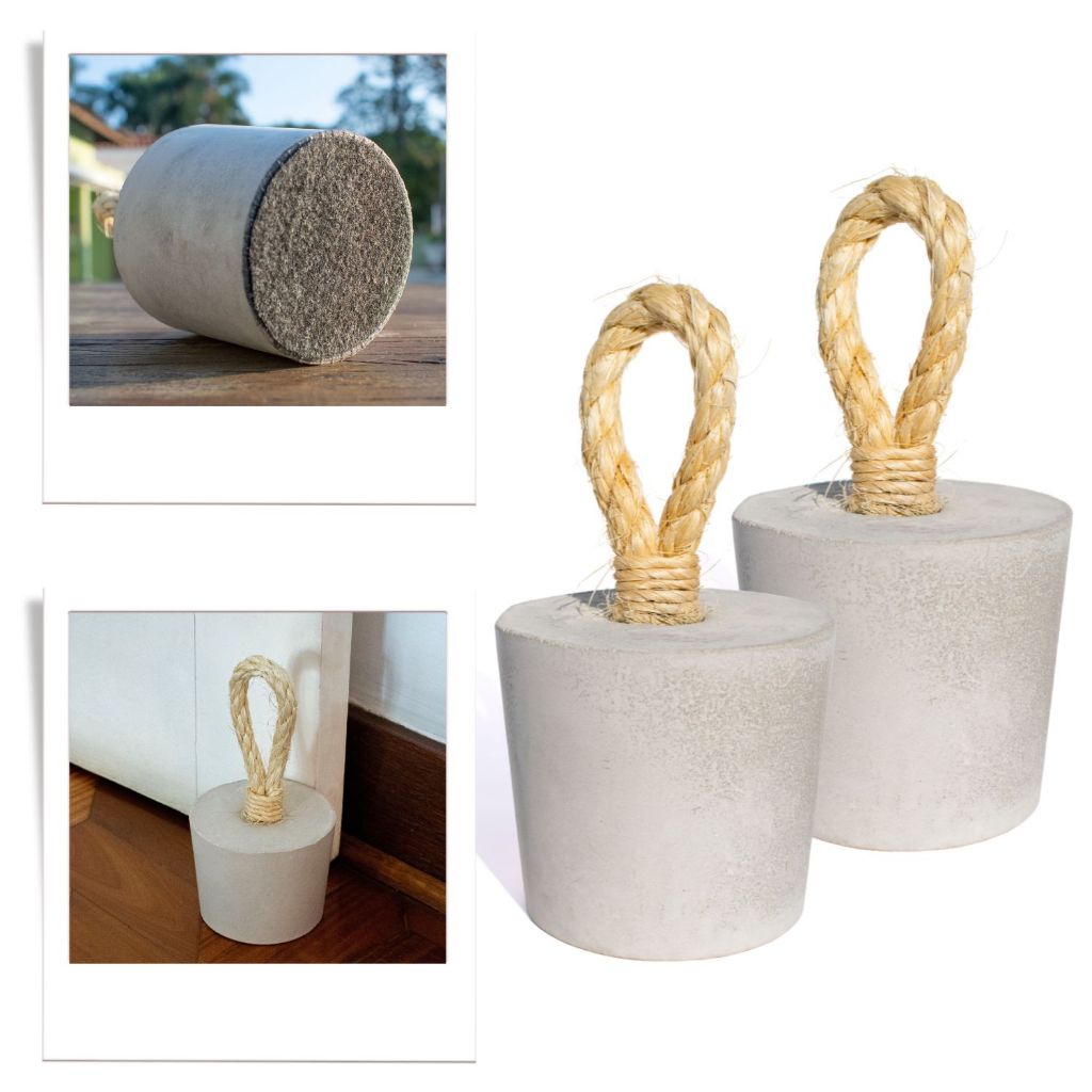 Kit 2 Pesos de Porta Artesanal Calço De Porta Redondo 1.3 Kg - Com Alça em Sisal e Base Protetora