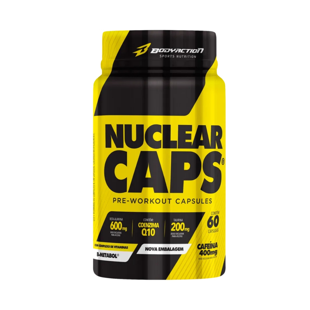 Pre Treino Nuclear Rush 60 Cápsulas Bodyaction Cafeína B Alanina Boro Taurina Coq-10 Sabor Sem Sabor