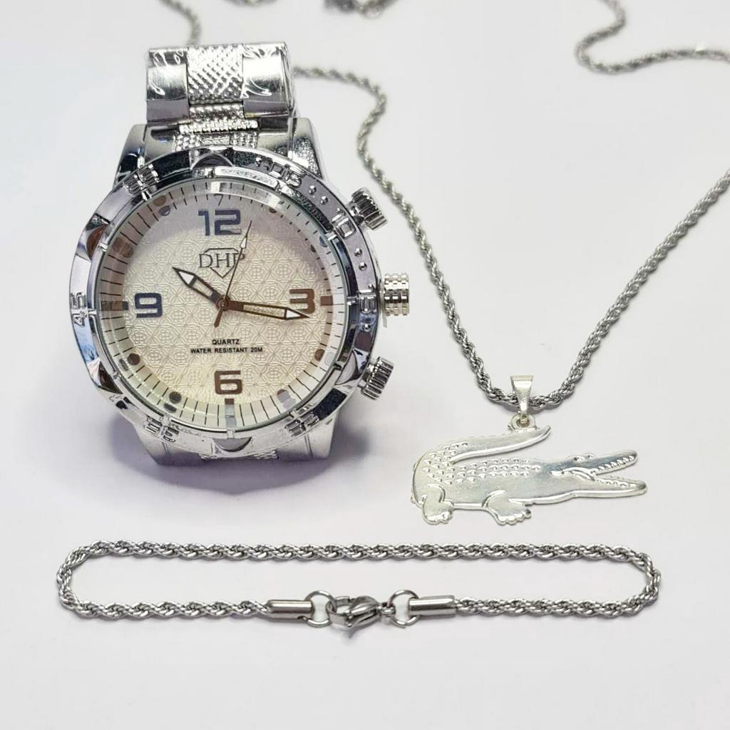 kit relógio masculino a prova d água e corrente masculina lacoste cordao Pulseira prata