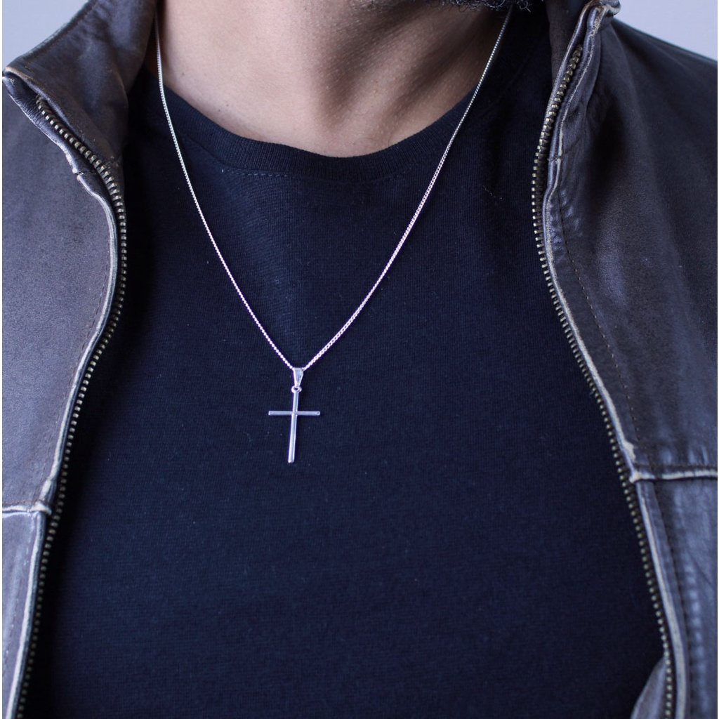 Kit 2 corrente com pingente Correntinha Masculina Banhada a Prata colar aço inox Pingente Cruz Palito