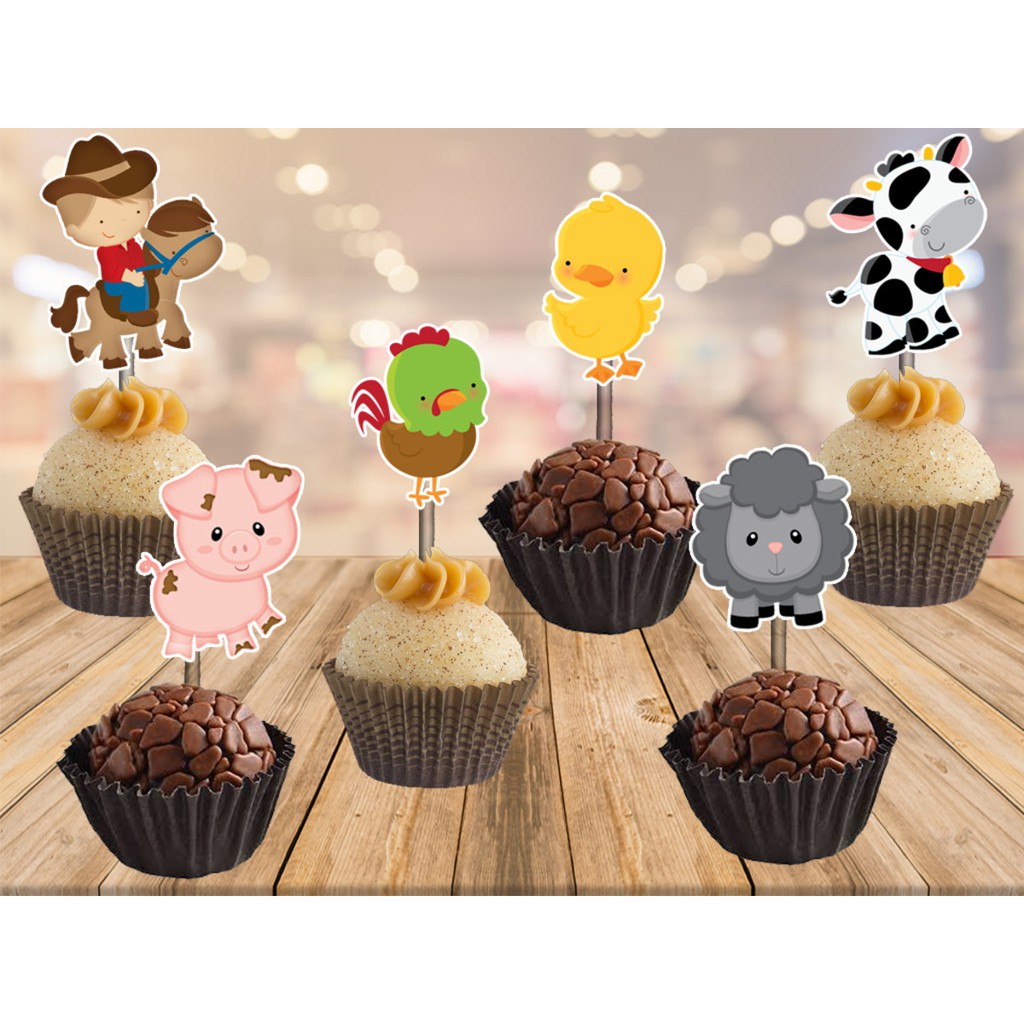 50 Tags Toppers P/ Docinho Fazendinha para festa, brigadeiro beijinho
