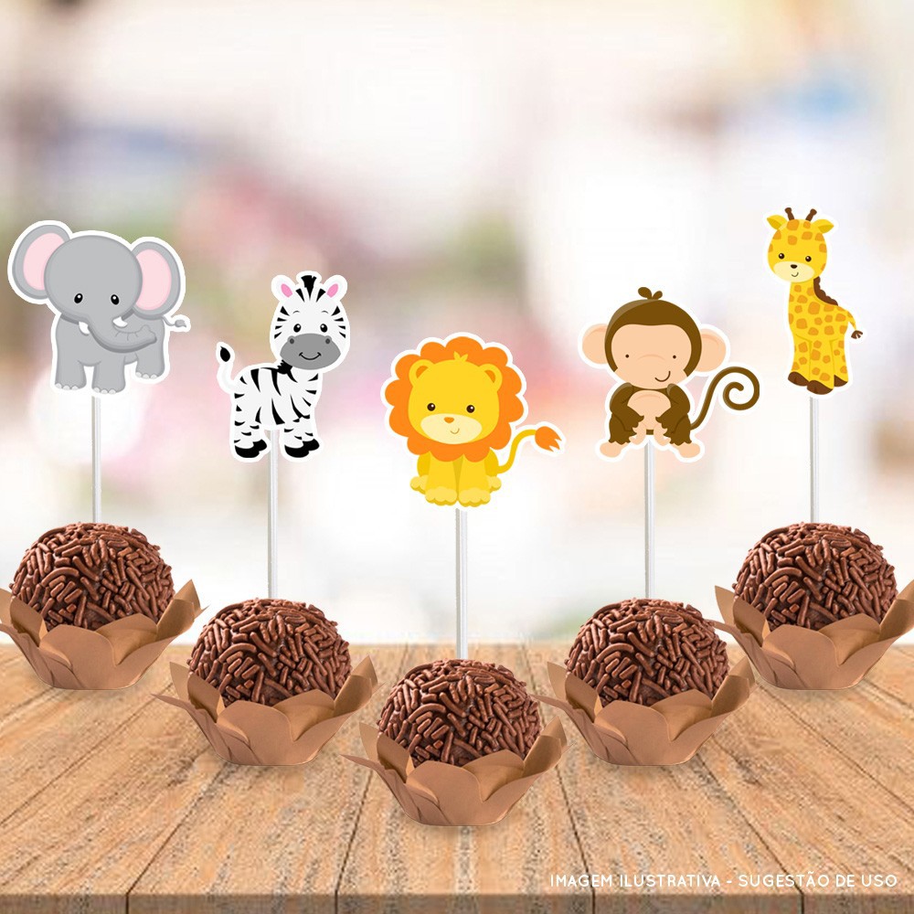 50 Tags Toppers P/ Docinho Safari Ifantil para festa, brigadeiro beijinho