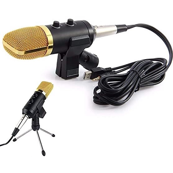 Microfone Condensador Sf-666 Com Suporte E Fio De 2 Metros Para Podcast E Estúdio