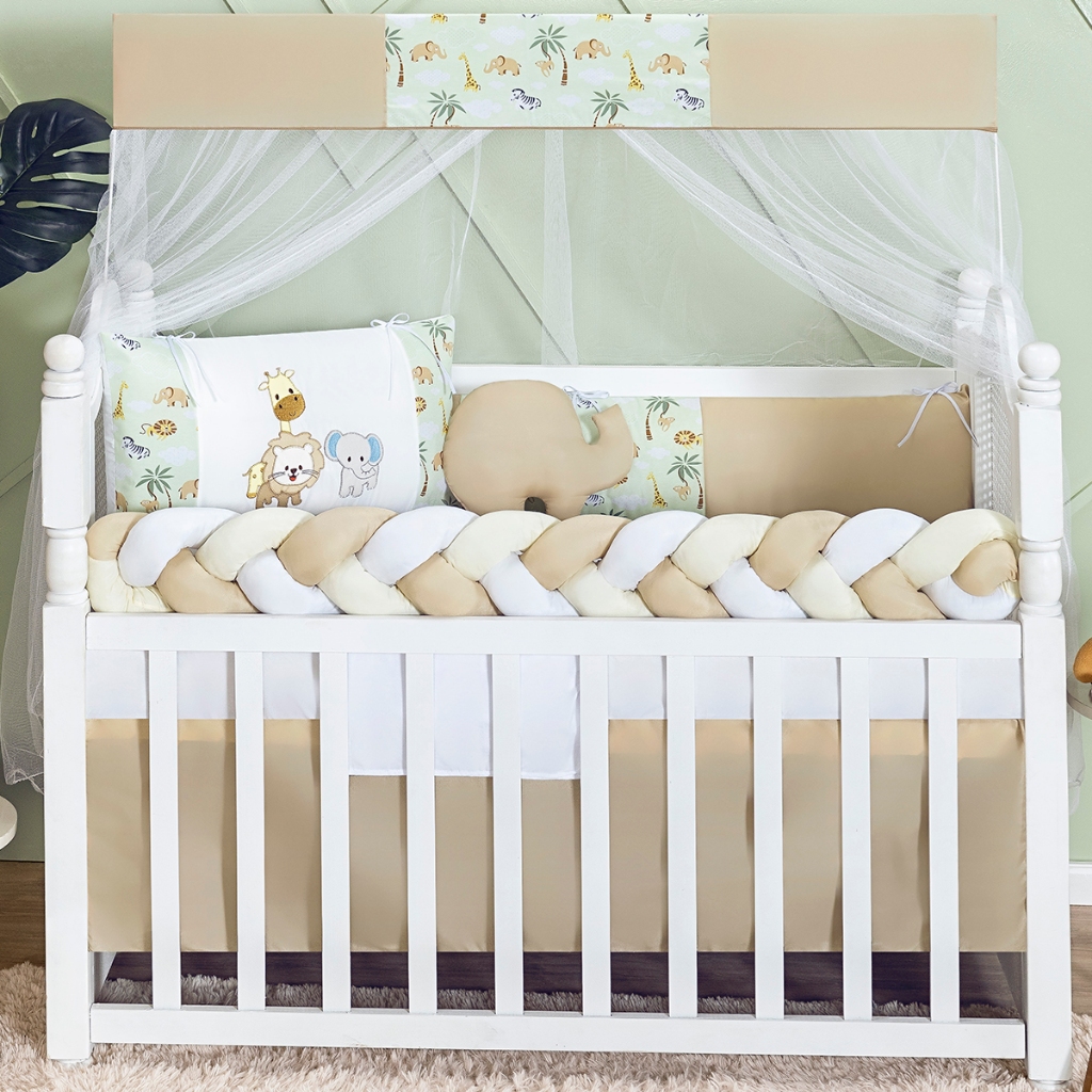 Kit Berço Trança Menino Completo Padrão Nacional E Americano 9 Peças Modelo Tranca Azul Verde Safari Bege Branco Neutro Nuvem Amor Protetor Lateral Berço para bebê Enxoval para berço - Promoção