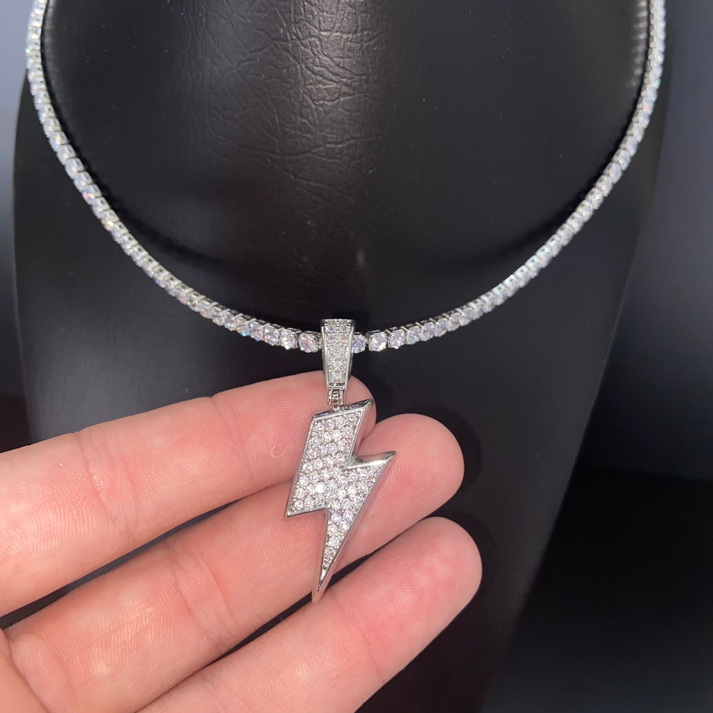 Colar corrente cordão Ice Raio Relâmpago cravejado em ZIRCÔNIAS Premium A+++