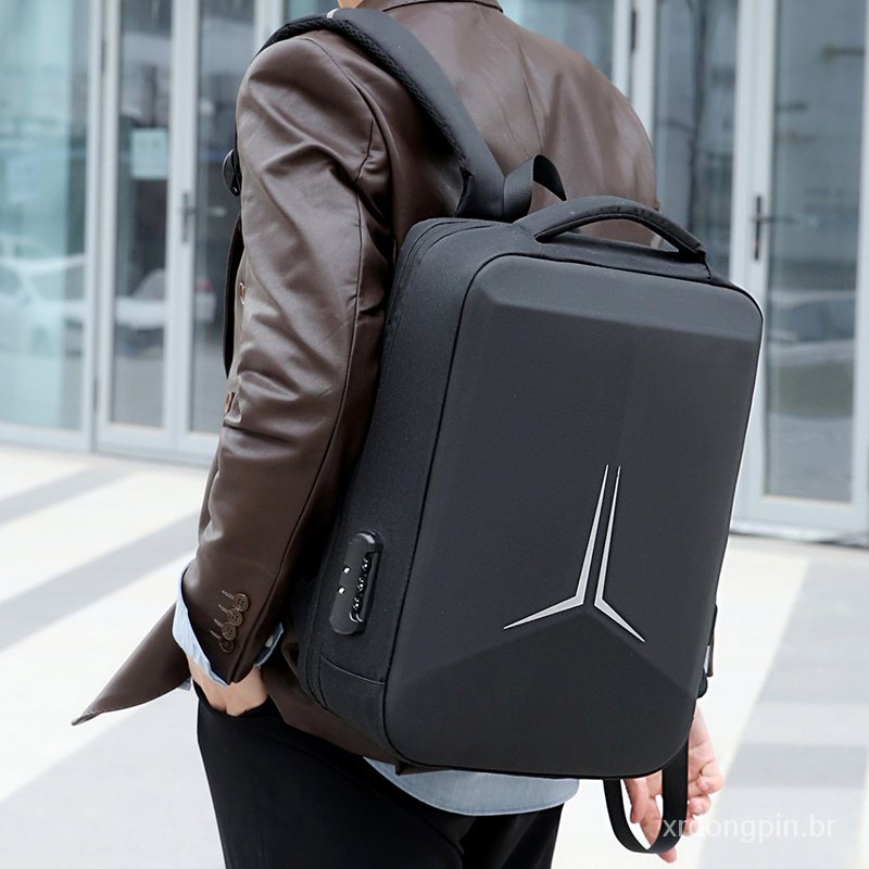 O fabricante fornece mochila masculina de 17,3 polegadas 15,6 saco de computador de estrutura de liga de metal saco anti-roubo de caixa dura de negócios bolsa de ombro duplo