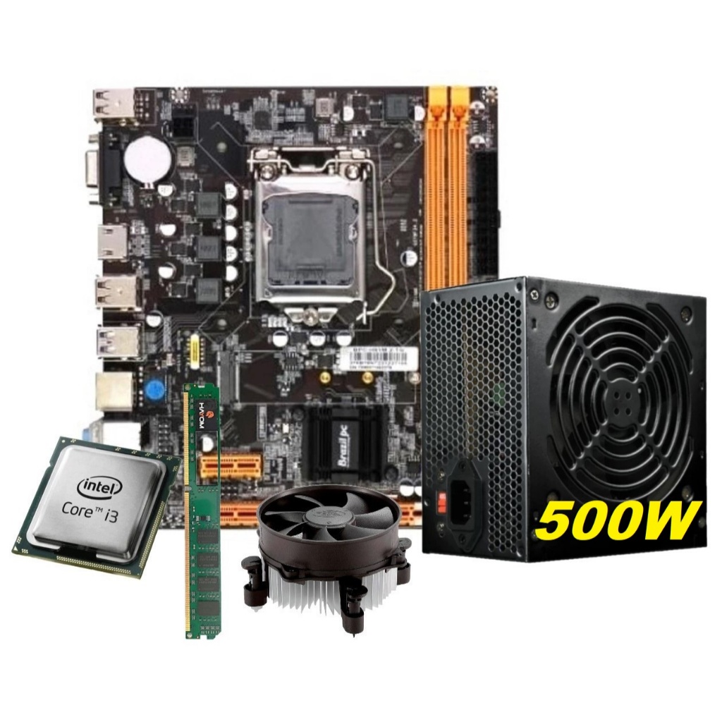 Kit UPGrade Fonte 500W Placa Mãe H61 Slot SSD M2 Processador Intel i3-2100 Memória 8GB DDR3 lga 1155