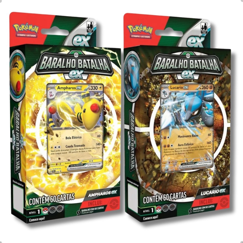 Kit 2 Decks Pokémon Baralho De Batalha Ex-ampharos E Lucario