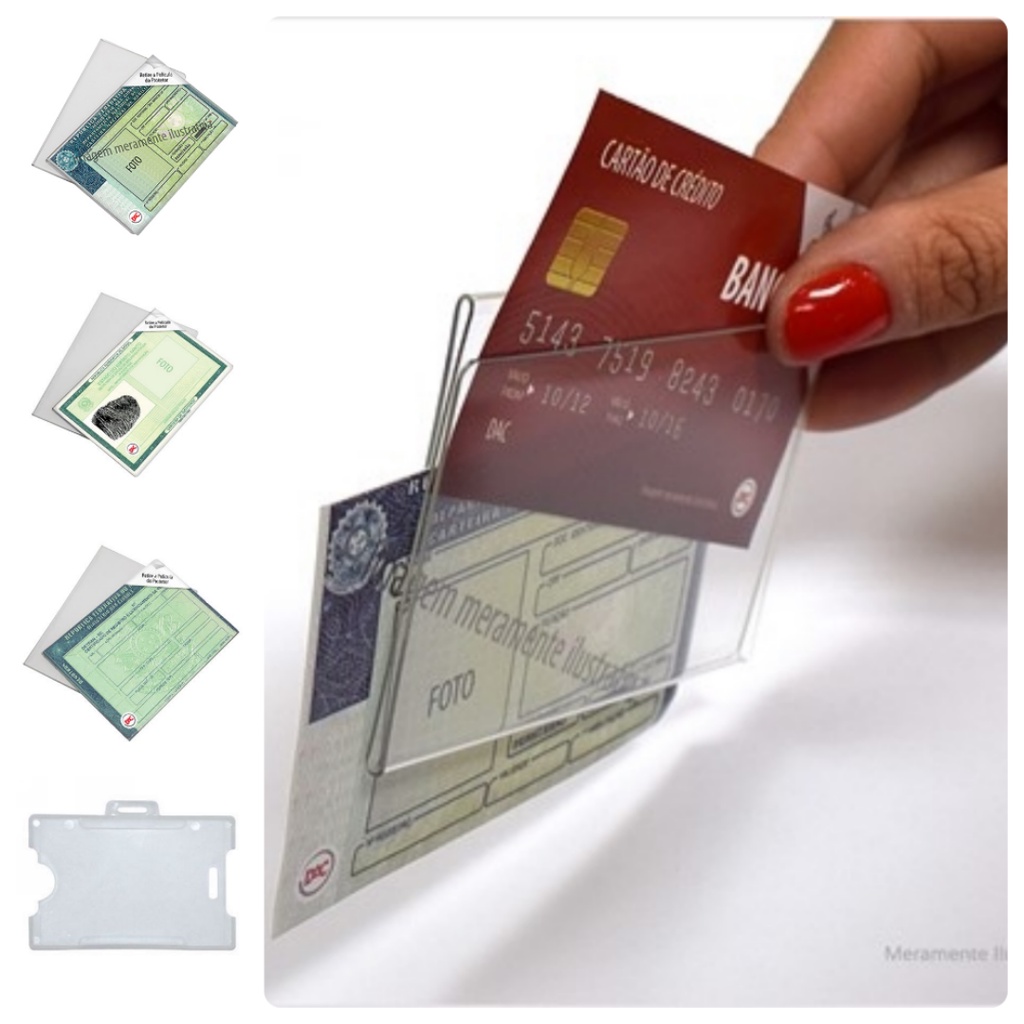 Protetor em Acrílico para Documentos RG, CNH e CRLV - porta crachá / Cartão - CNH com Cartão