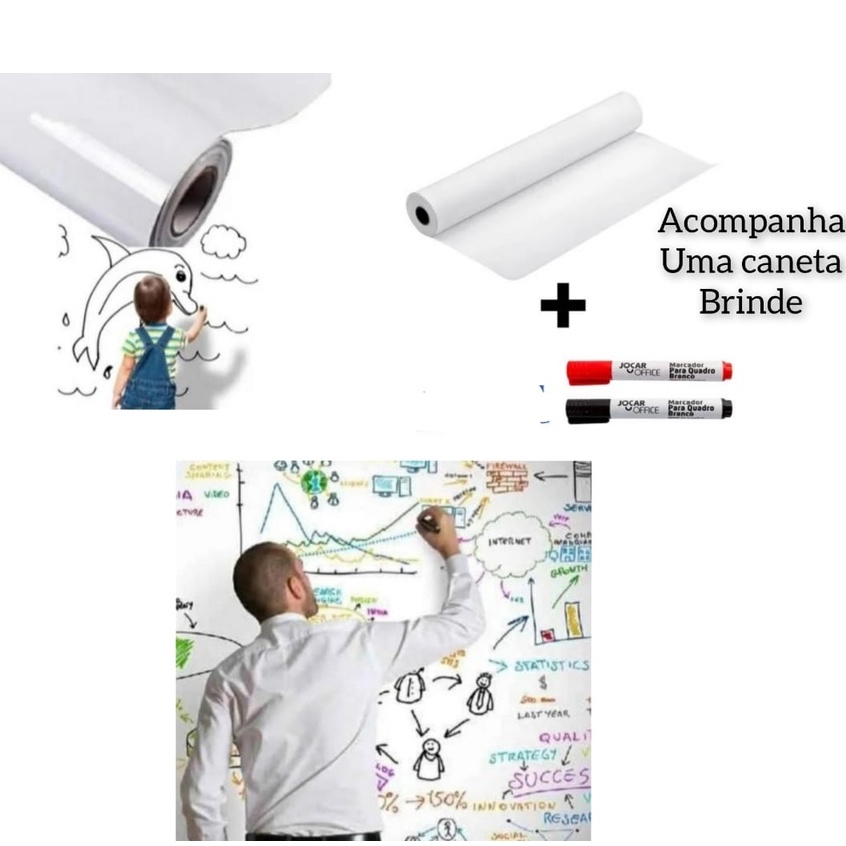 Adesivo Quadro Branco Painel auto colante com caneta marcador canetao giz liquido