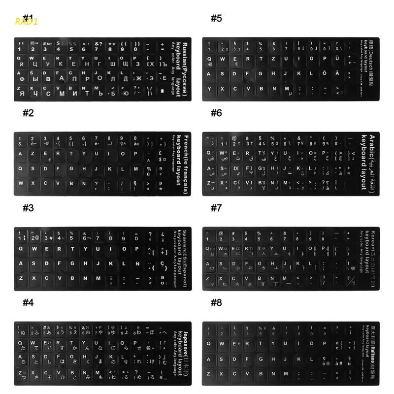 Red1 Durável Russo / Francês / Espanhol / Japonês / Alemão / Árabe / Coreano / Italiano Teclado Linguagem Adesivo De Fundo Preto Com Branco Lettering Para Computador Portátil Pc Acessórios