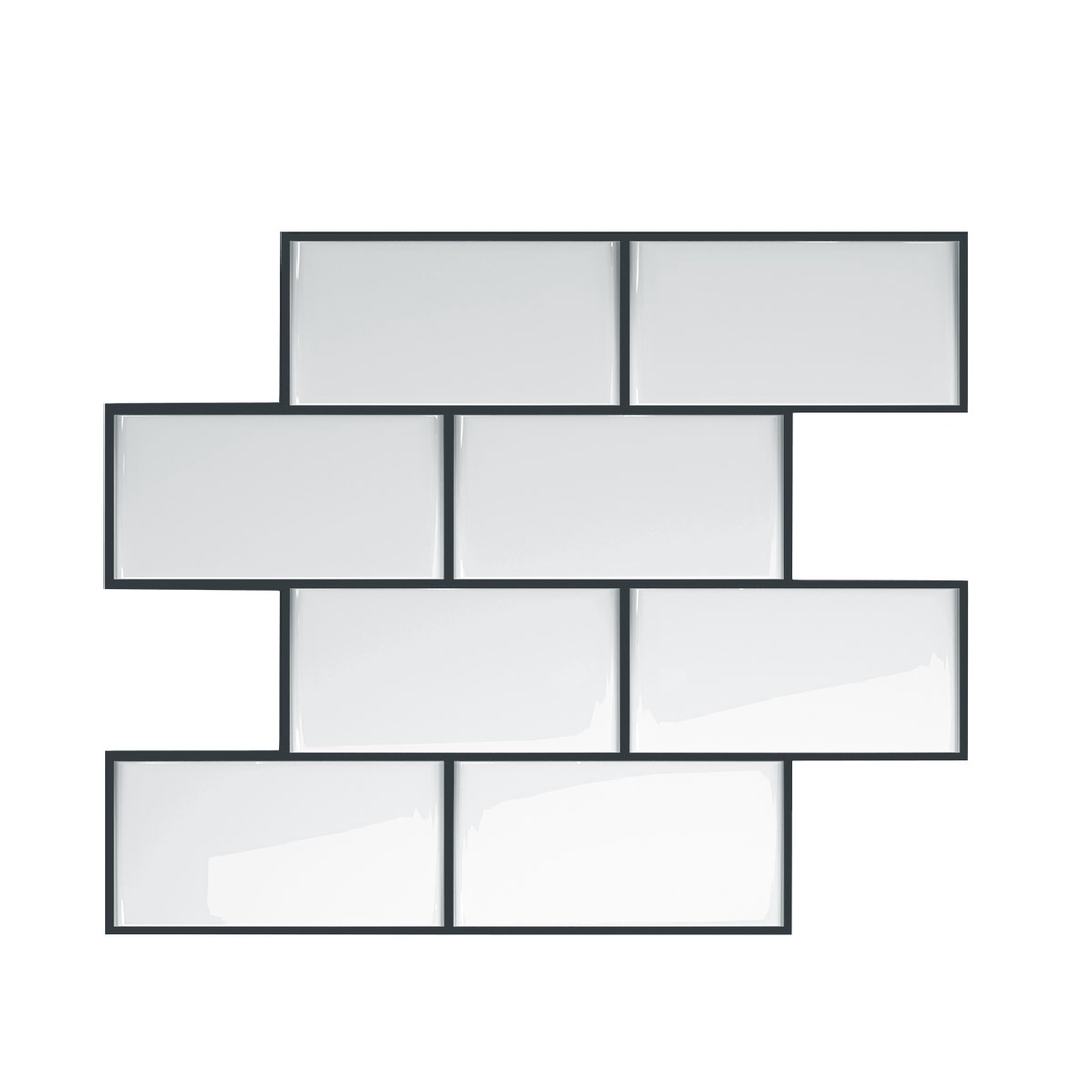 Pastilha Adesiva Cozinha 3d Resinada Subway Tijolo Branco Com Rejunte Preto Lavável 24x24cm Decorativa Adesivo Para Parede Sala Quarto Cozinha Azulejo