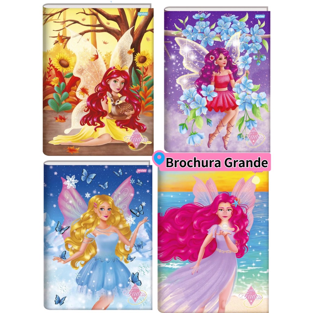 Caderno brochura Grande 80 Folhas Conto de Fada Universitario Capa Dura Infantil Menina Jandaia