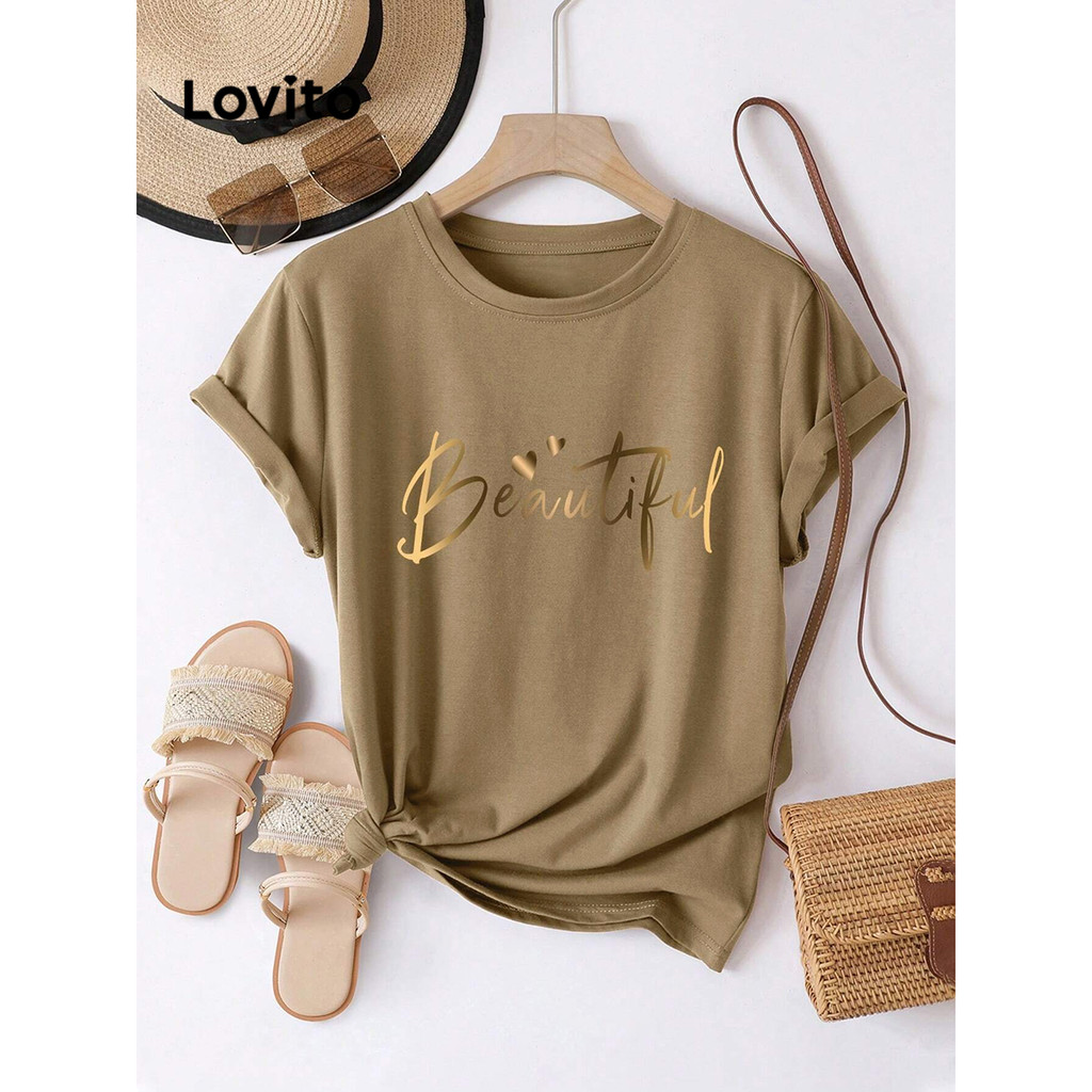 Lovito Camiseta Feminina Casual Com Estampa De Letras LNA50088