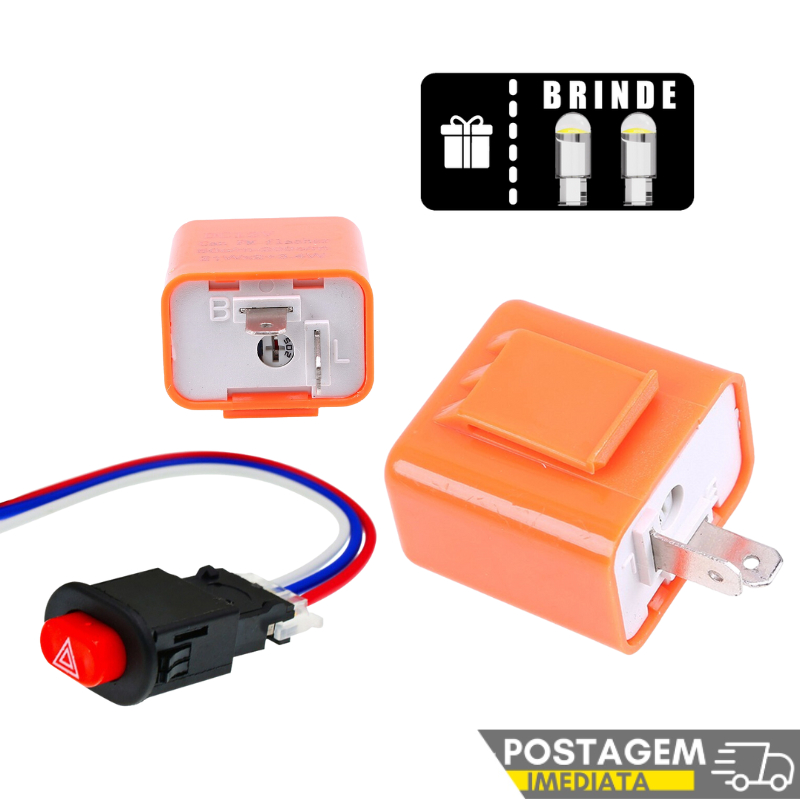 1x Kit Rele 2 Pinos, Ajustavel Para Moto + Botão, Alerta, Pisca, Seta, Guidão