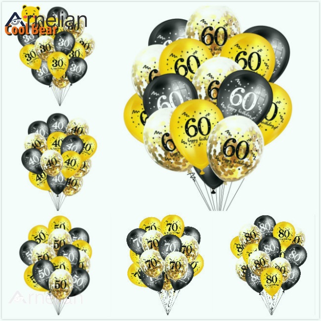 arnelian 15PCS 30 40 50 60 70 80 Anos De Idade Conjunto De Balões De Látex Confetti Combinados Festa De Aniversário Para Adultos
