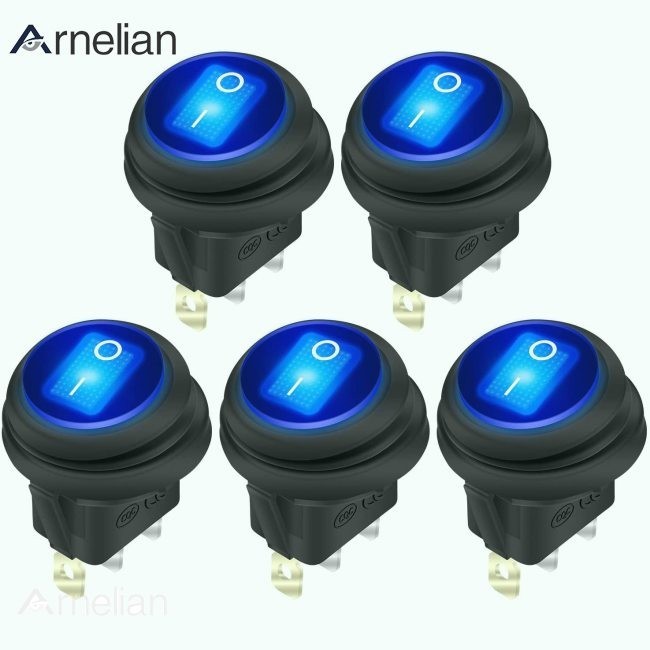 arnelian 5pcs/set Rocker Switch 3 Pinos 12v 20a Interruptor De Ligar/Desligar Redondo Iluminado Com Luz Azul À Prova D'água