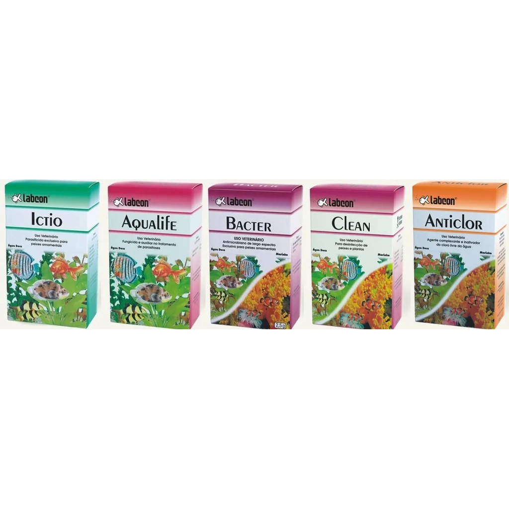 Kit Alcon Labcon Ictio + Aqualife + Bacter + Clean + Sani Para Aquario Doce