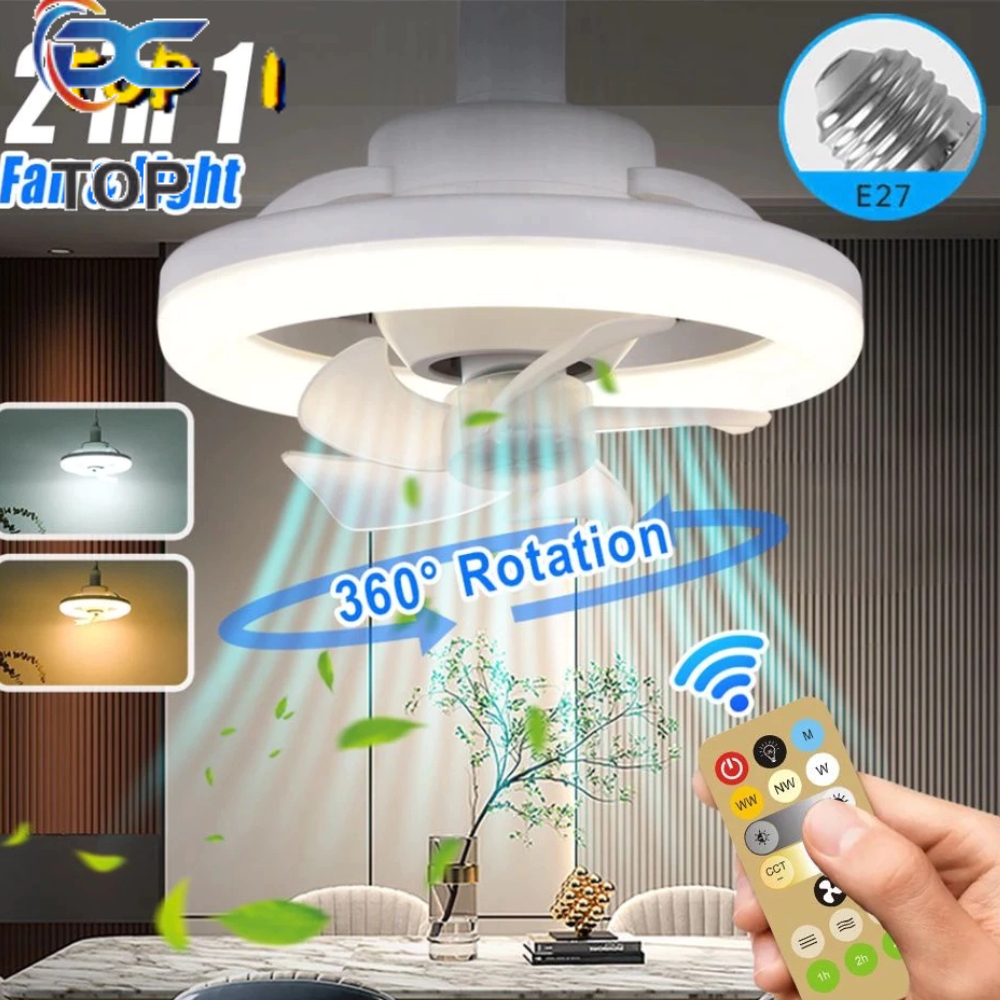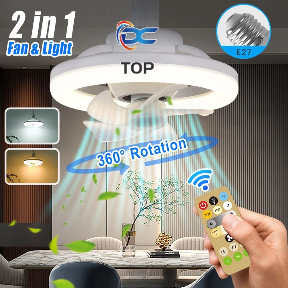 💥💥【24 hours shipping】💥💥Controle Remoto Led Light Com Lâmpada Do Teto Do Ventilador E27 Como Controle Remoto Silencioso Inteligente Para Sala De Estar Quarto