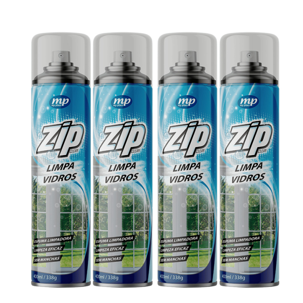 Limpa Vidros Zip Clean Espuma Ativa - 400ml Kit 4 Unidades