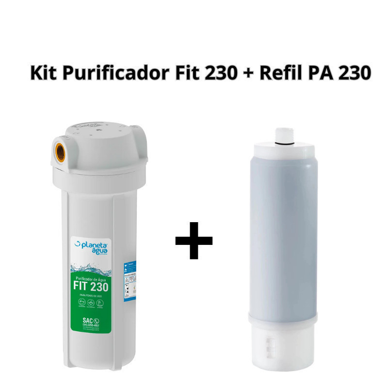 Kit Purificador de Água FIT 230 Rosca Metal 3/4" + Refil PA 230 Planeta Água