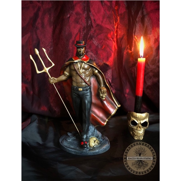 Estátua/Escultura Imagem Exu Capa Preta Realista Resina