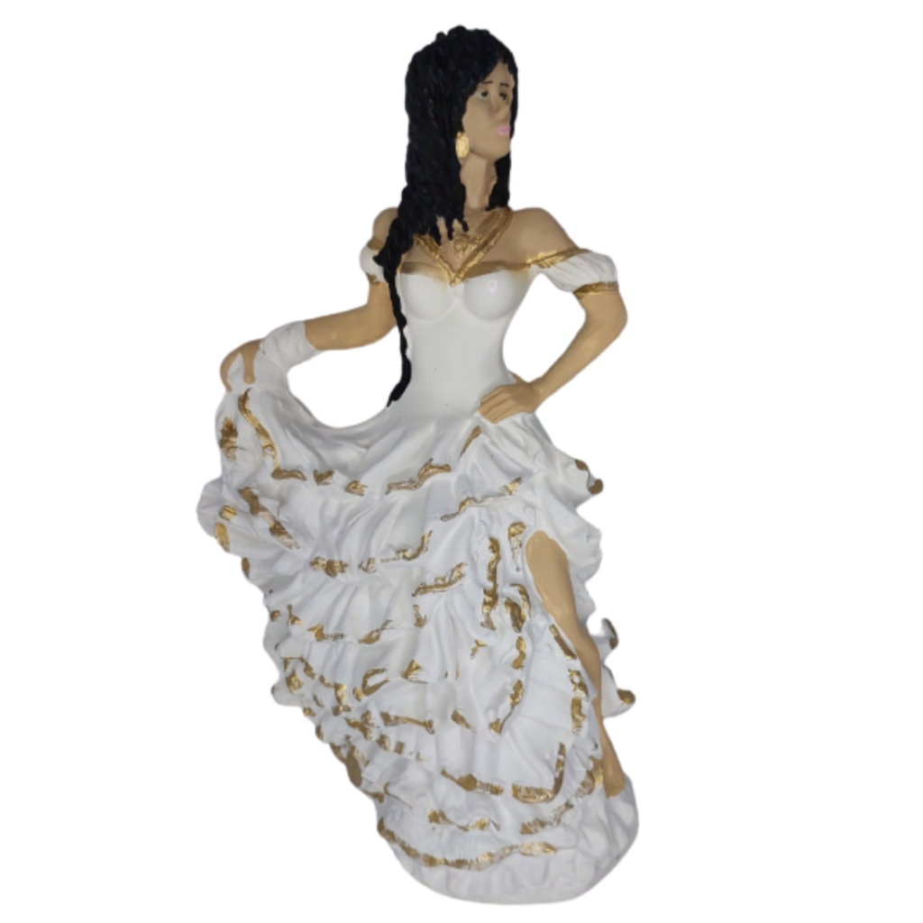 Escultura Estatua Imagem cigana a batizar - 25cm - Vestido Branco Gesso