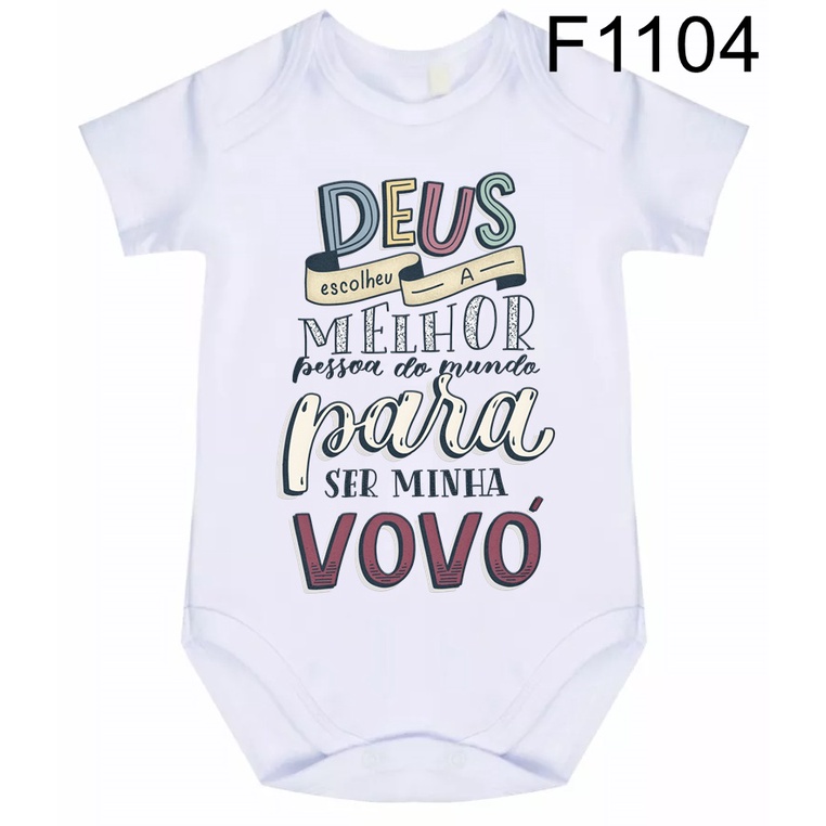 Body Roupa de Bebê Frases Deus Escolheu a Melhor Pessoa Do Mundo Para Ser Minha Vovó F1104