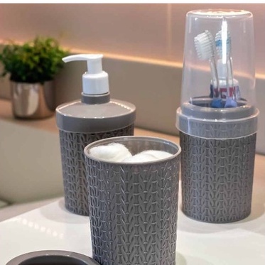 Kit Banheiro Toalete Trama com Porta Escova/Porta Sabonete Liquido e Porta Cotonete/Algodão