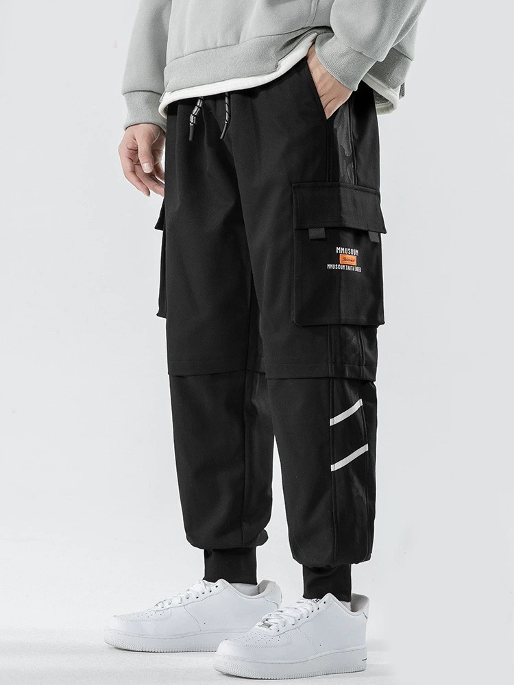 Estudantes do ensino médio Homens do ensino médio Vestem na rua Versão coreana da moda em macacão de bolso múltiplo Homens de macacão de bolso reto Calças compridas casuais soltas Tudo...