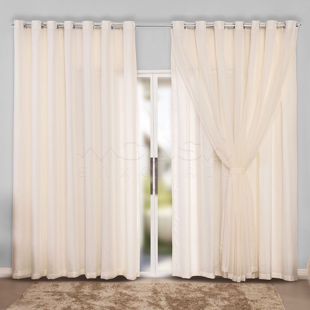 Cortina Luxo 3,00x2,70 Metros Microfibra Com Voil Bege Sala e Quarto Delicada - Frete Gratis - Produto da Fábrica!! Capital do Bordado.