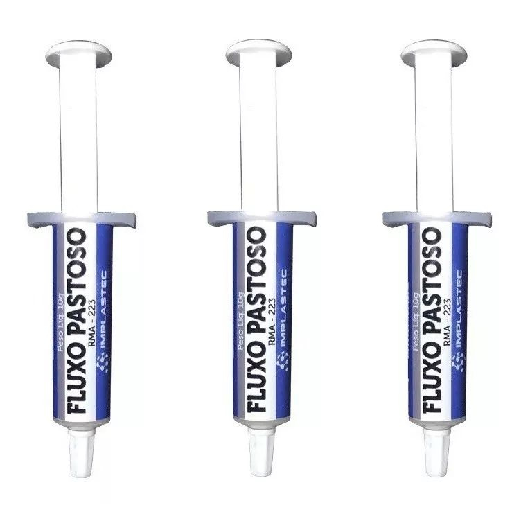 Kit com 3x Fluxo de solda Pastoso Implastec Rma-223 10g Reflow Reballing Bga