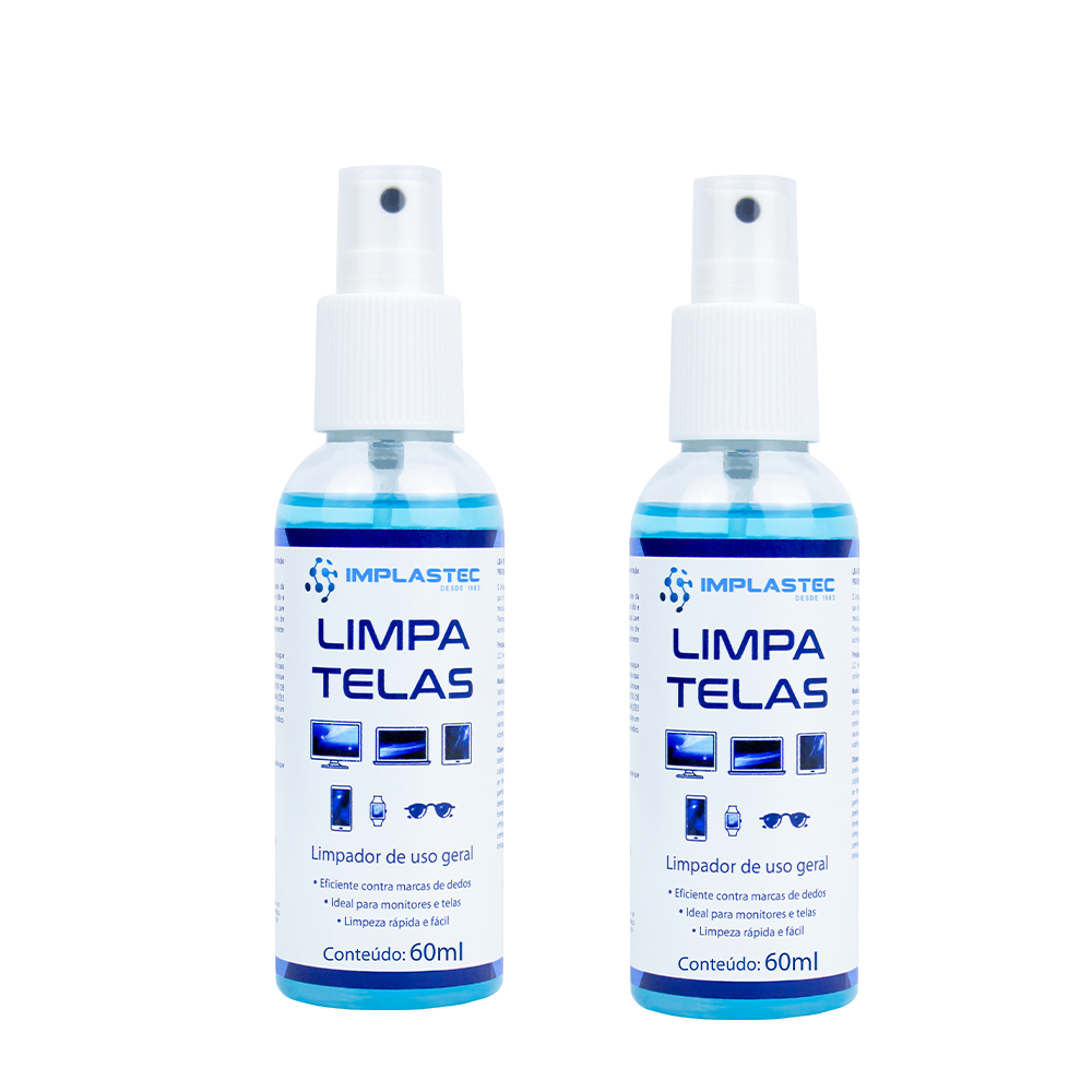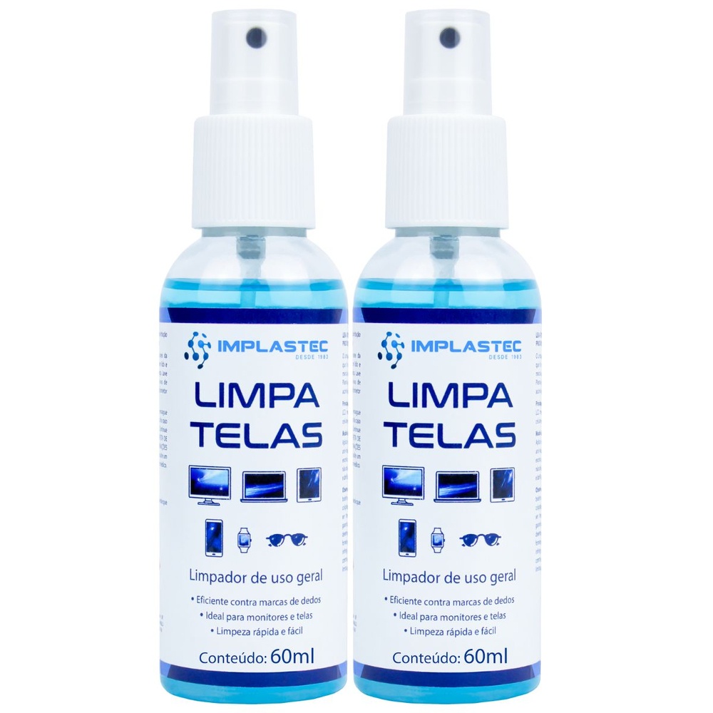 Kit com 2x Limpa Telas Implastec 60ml Remoção de manchas, marcas de dedos (gordura) e poeira de monitores, TV, Tablet