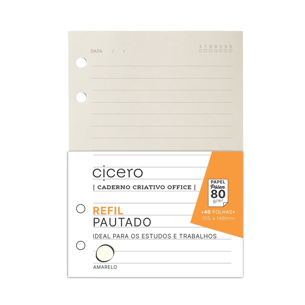Refil Caderno Argolado - Cícero - A6 Pautado Pólen 40 folhas 80g