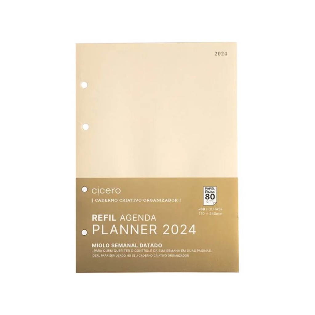 Refil Planner Argolado - Cícero - 88 Fls Pólen 2024 Semanal 17X24