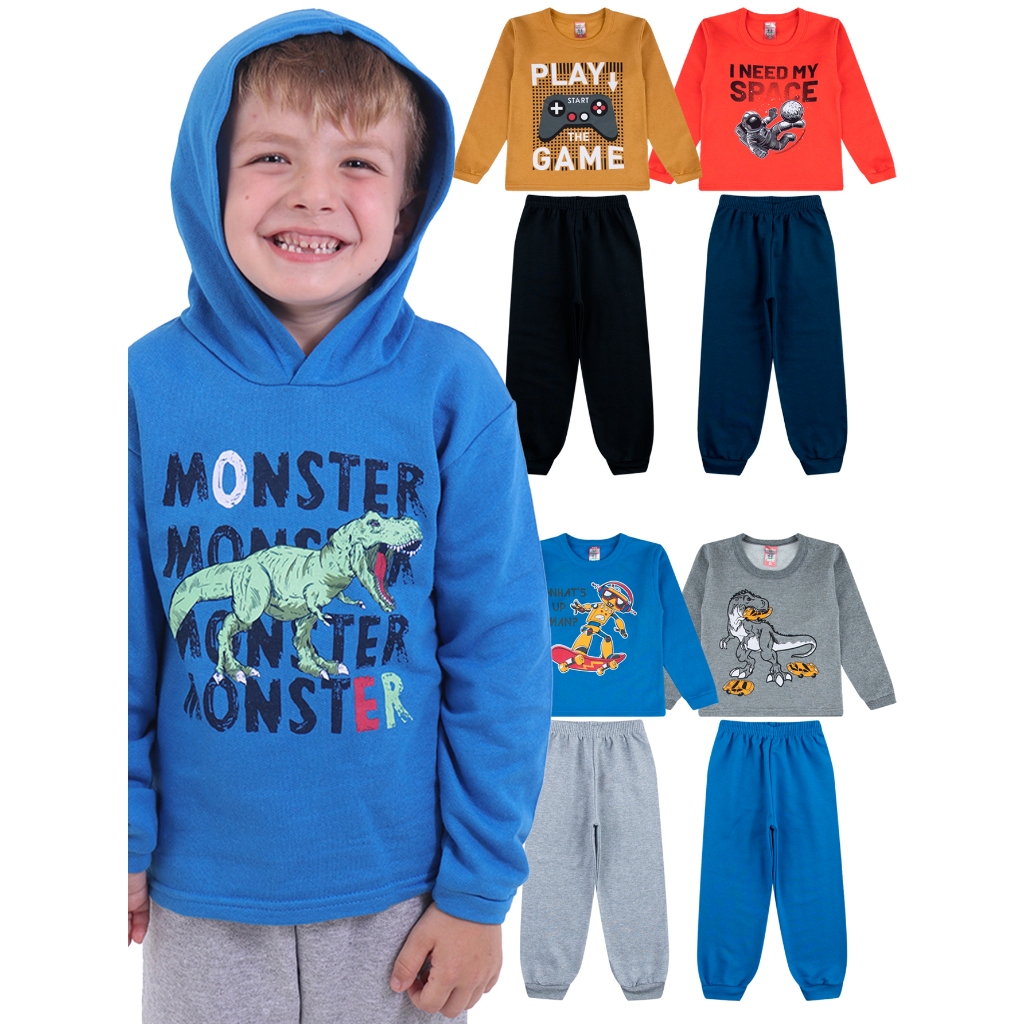 KIT 4 Peças Conjunto de Moletom Infantil Menino 1 a 16 anos 2 Calça + 2 Blusa De Frio Abrigo Para Crianças