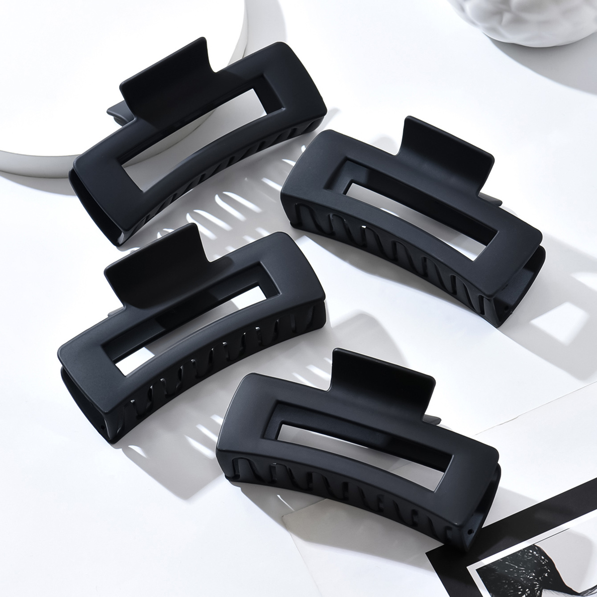 Conjunto de 4 peças Clip de agarramento diário de agarramento diário de agarramento grande preto Clip de agarramento acrílico Clip de agarramento traseiro Clip de cabeça Clip simples de tubarão Adequado para senhoras Clip de Volume de cabelo feminino Fixa