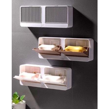 Saboneteira De Parede com Tampa Para Banheiro Com Suporte Ventosa Minimalista montada em parede com tampa dreno de pó sabonete fixação Adesivo