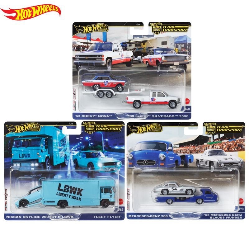 Carro Hot Wheels Cultura Transporte Frota Mercedes-Benz 300 Nissan Skyline Base de Ferro Pneu de Borracha FLF56 Liga