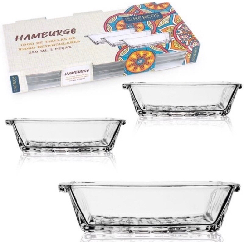 Jogo Com 3 Travessa Retangular De Vidro 220ml Para Sobremesa Oferta