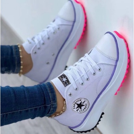 Tênis All Star Run 2.0 Sola Alta Tratorado Ortopédico Lona Feminino