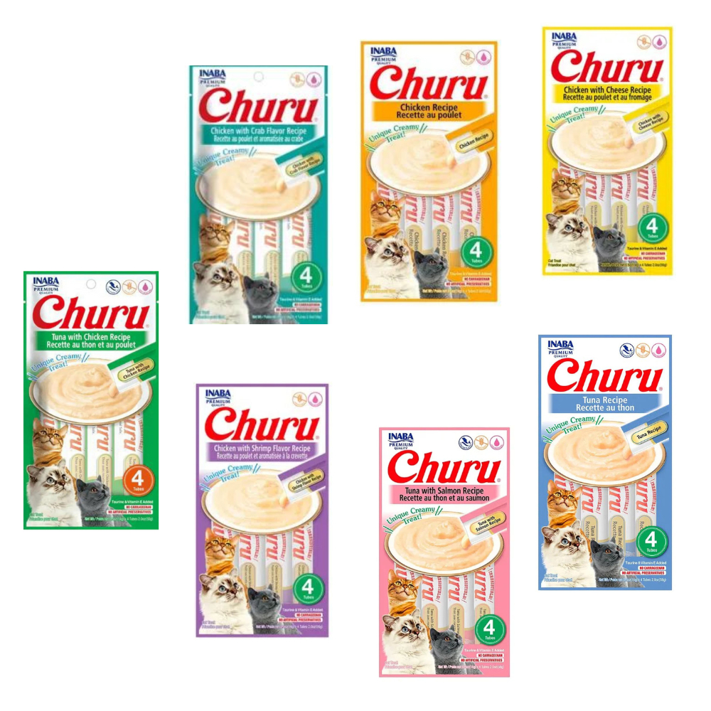 Petisco para Gatos Purê Churu Inaba Kit com 10 9 8 7 Pacotes Variados 56g cada promoção