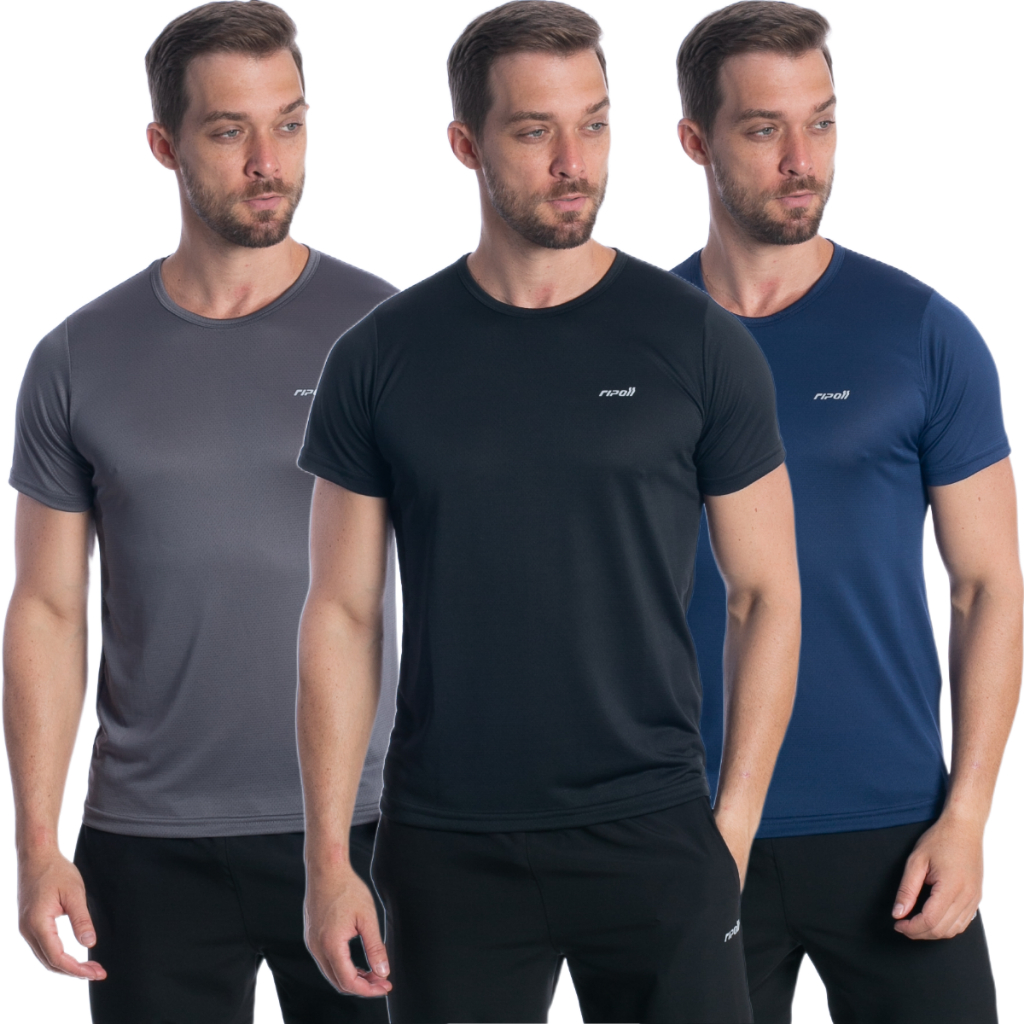 Kit 3 Camiseta Dry Fit Masculina Lisa Manga Curta Camisa Academia Treino Fitness Esportes